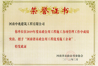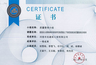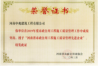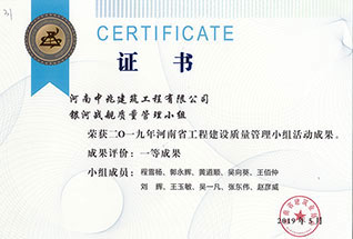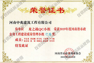 2019年度河南省市政公用工程建設(shè)質(zhì)量管理小組優(yōu)秀獎