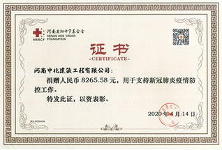 河南省紅十字基金會證書