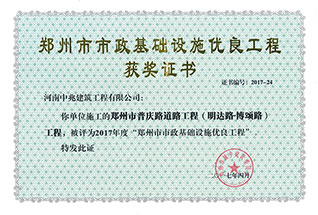 2017年度鄭州市市政基礎(chǔ)設(shè)施優(yōu)良工程