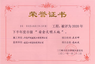 河南省市政工程省級安全文明工地榮譽(yù)(示范區(qū)支路項(xiàng)目)