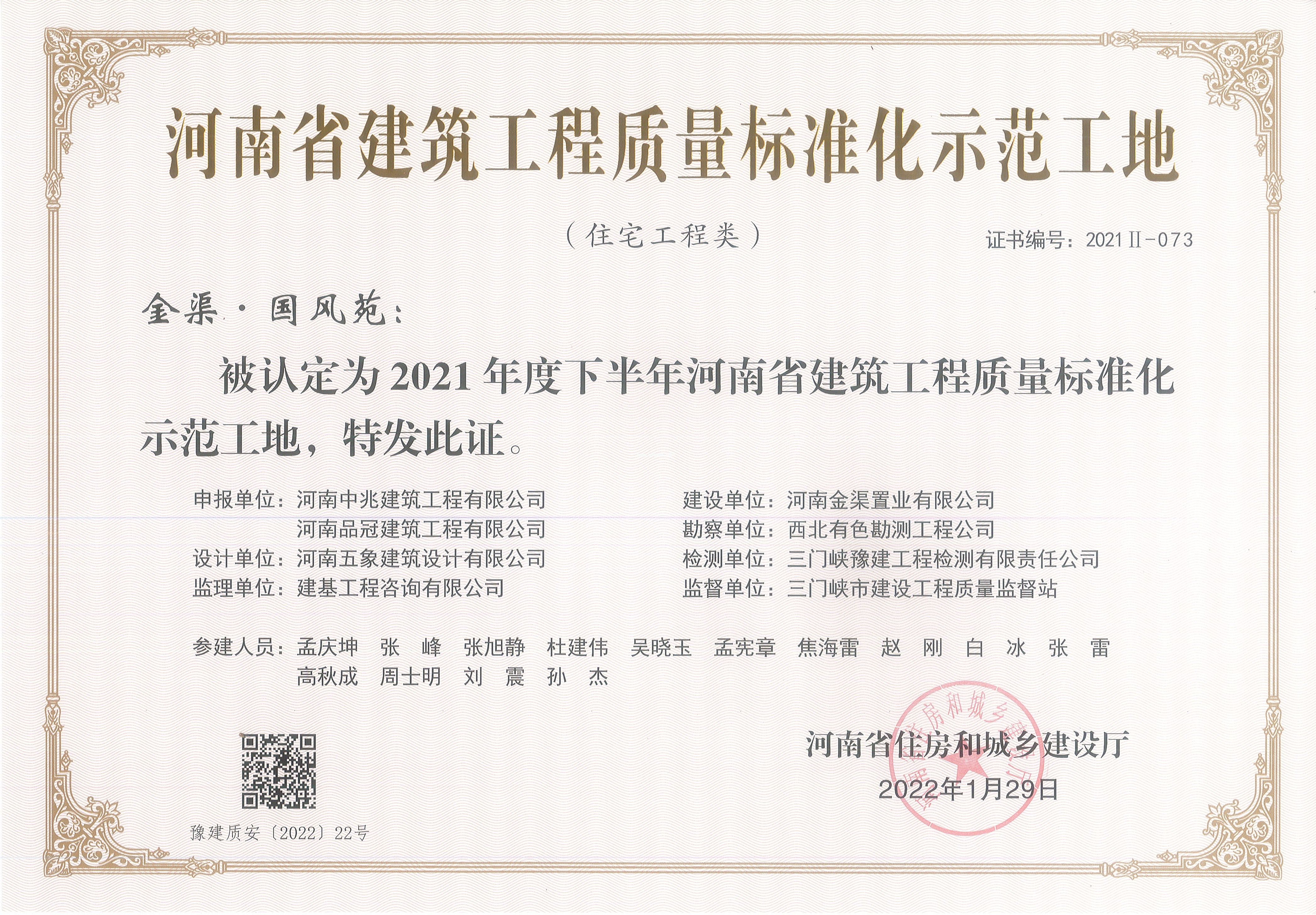 河南省建設(shè)工程施工安全生產(chǎn)標(biāo)準(zhǔn)化工地榮譽(yù)